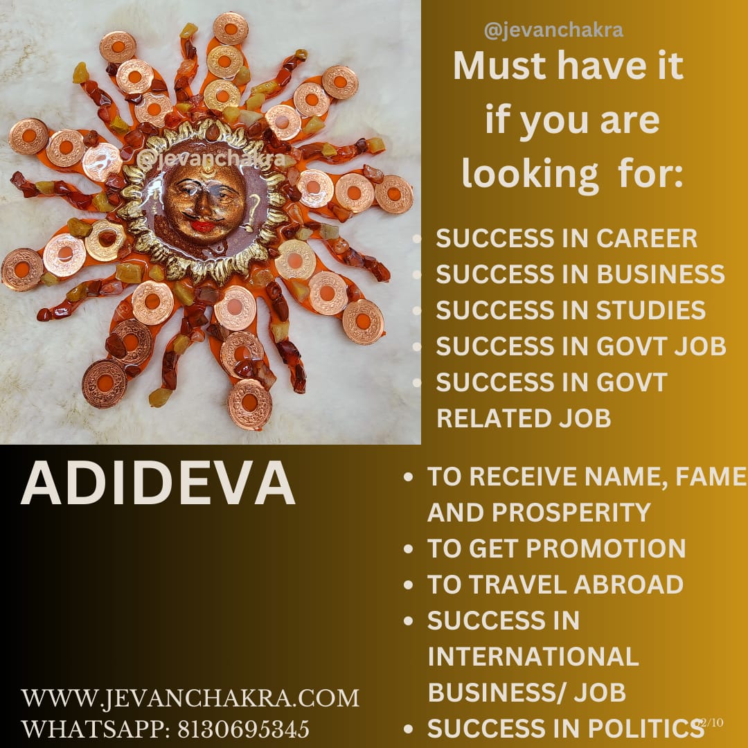✨ Elevate the energy of your space with our Exclusive Vastu Energy Product – ADIDEVA (SUN)! 🌟 Crafted with Copper coins and High-energy crystals, (Red Jasper, Yellow Jasper, Carnelian)this powerful wall hanging is designed to bring positive vibrations into your home, office, or any space you want to energize. Ideal for: 🏠 East Wall of your House or Room 🧘‍♂️ Meditation & Yoga Centers 💼 Office, Workplace, or Study Room 🏫 Schools, Colleges, Universities 🛍️ Shops, Business Places, Factories, and more! Why to have one? *SUCCESS IN CAREER