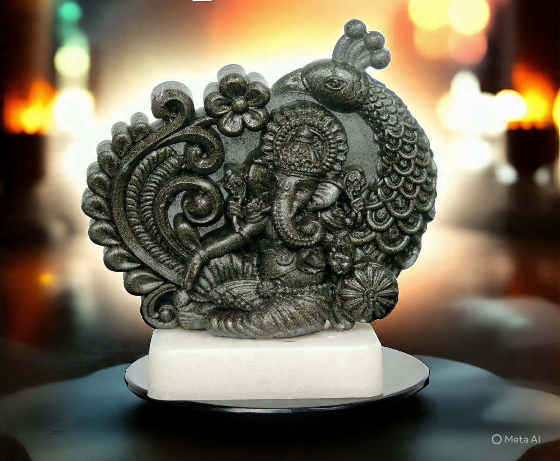 Golden Pyrite Ganesha with Peacock