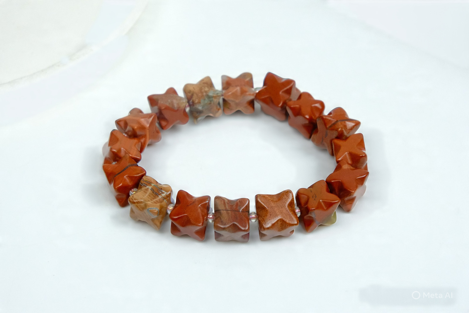 Merkaba Red Jasper Bracelet – Strength, Stability & Grounding Embrace courage and inner stability with the Merkaba Red Jasper Bracelet, a sacred blend of the Merkaba star, symbol of divine protection and spiritual light, and Red Jasper, the stone of strength, vitality, and grounding. Together, they form a powerful talisman of endurance and protection.