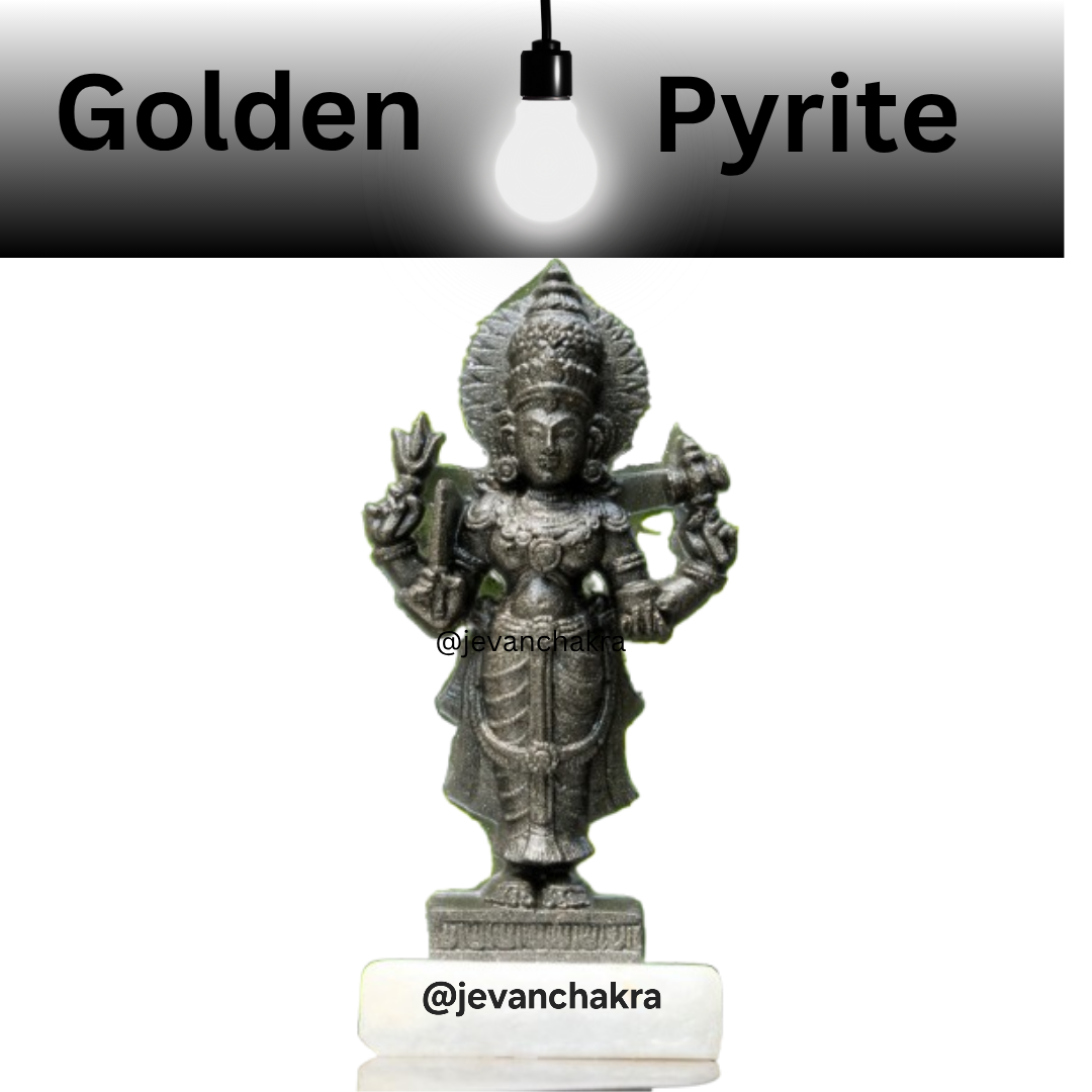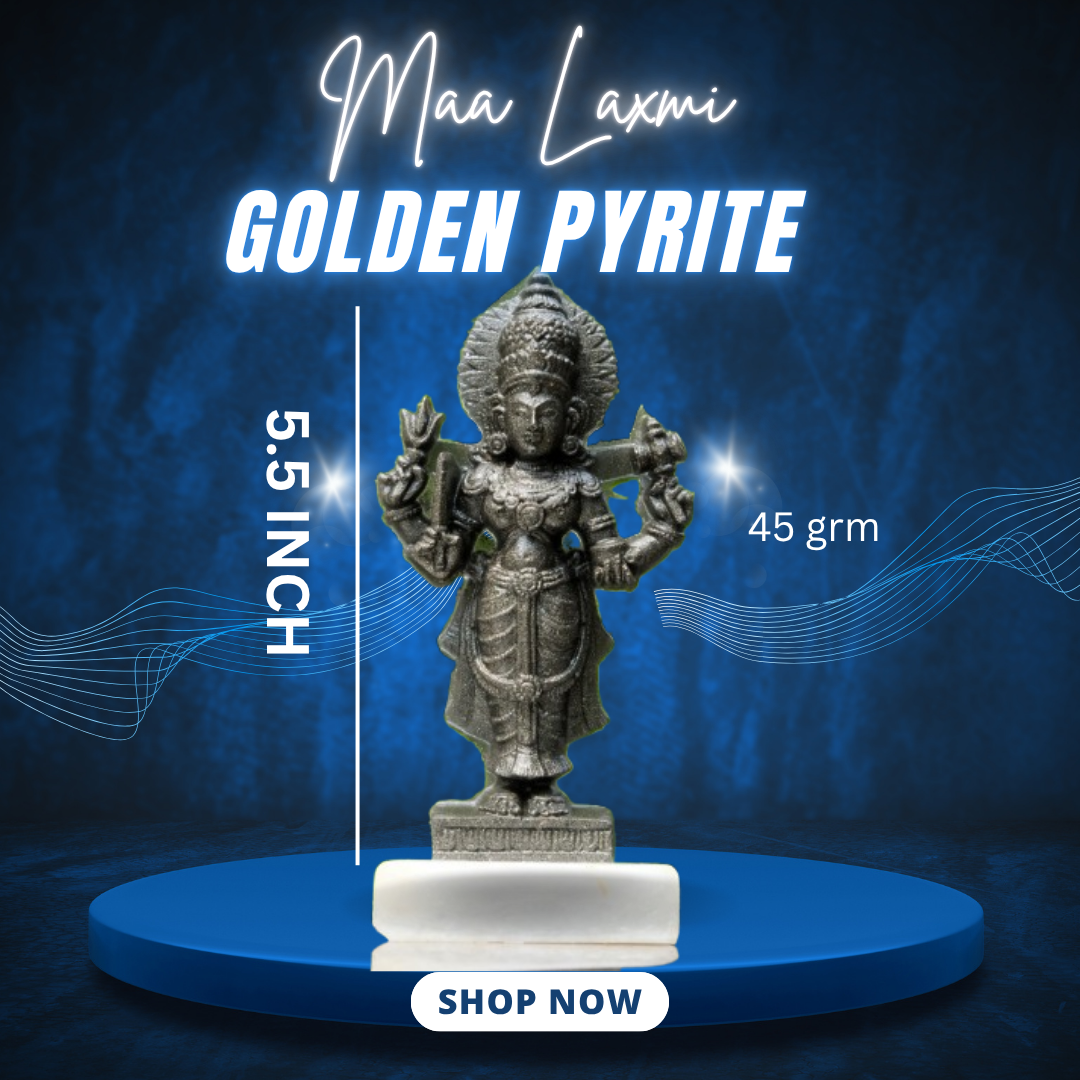 🌟 Goddess Lakshmi Pyrite Idol – Bring Home Wealth, Light & Prosperity Invite abundance and divine grace into your life with the Goddess Lakshmi Pyrite Idol, a stunning symbol of prosperity, success, and protection. Crafted from natural golden Pyrite, also known as the Stone of Wealth, this exquisite idol beautifully depicts the benevolent Goddess Lakshmi, radiating opulence and positivity. Place this sacred idol in your home temple, office desk, or near the main entrance to: Attract wealth, prosperity & financial growth Clear negative energies and blockages Infuse your space with auspicious vibrations Elevate festive décor with divine energy and charm Ideal for Diwali celebrations, gifting, or everyday spiritual practice — this idol doesn’t just shine; it energizes your surroundings with abundance and light. ✨ Embrace Goddess Lakshmi’s blessings and welcome endless prosperity into your life! ✨ Product Details: Material: Natural Golden Pyrite Length: 13.6 cm Width: 7.2 cm Height: 5.3 inch 🪷 Care & Placement Tips: Keep the idol on a clean altar, table, or shelf facing North or East direction. Light a diya or incense stick in front of it every Friday or on Full Moon days to activate its energy. Clean gently with a soft cloth; avoid using water or chemicals on Pyrite. You may place Lotus flowers, coins, or rice grains nearby to enhance its prosperity energy. Once a month, cleanse energetically by placing it under moonlight overnight or around Himalayan salt crystals.