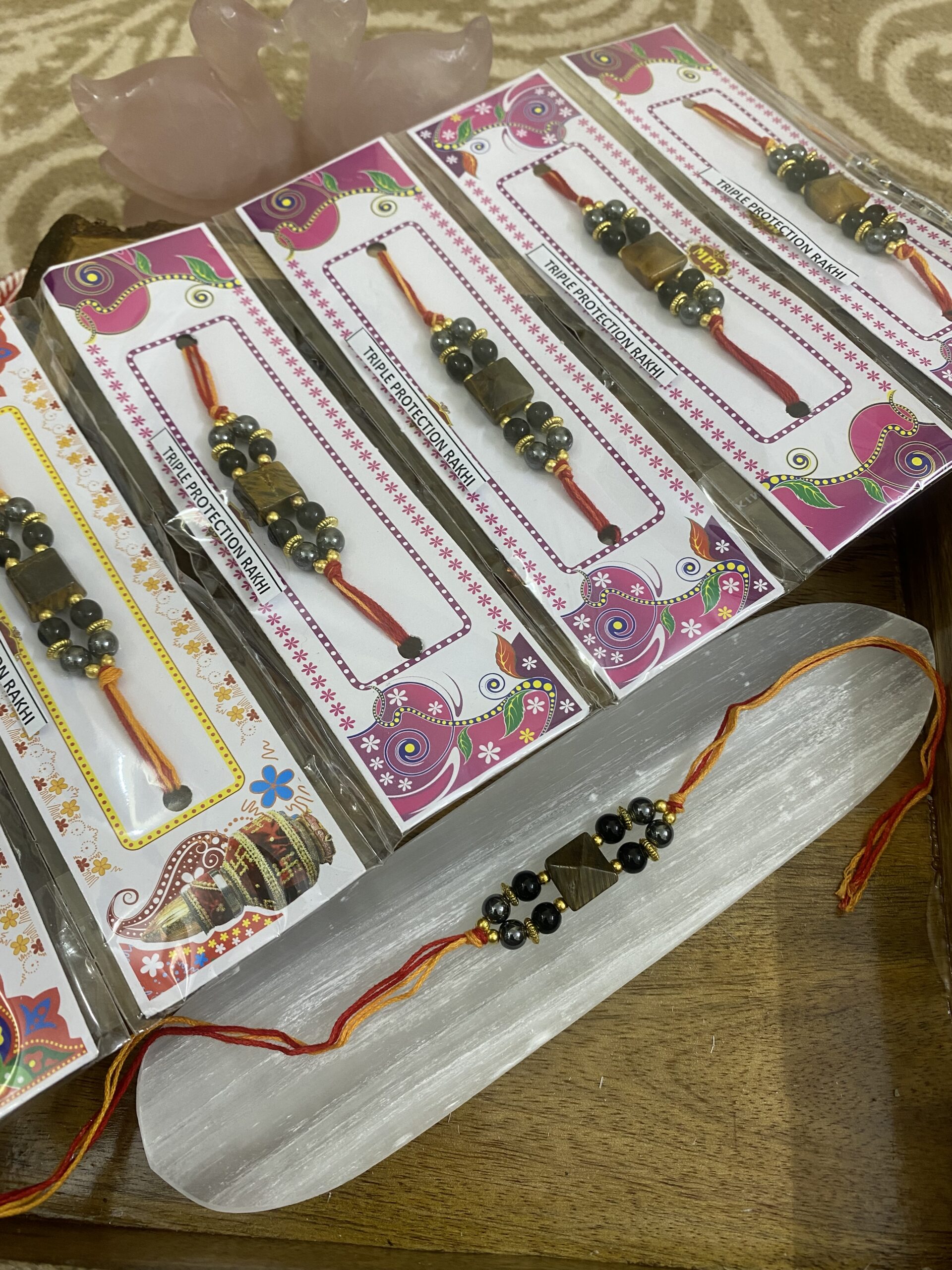 Rooted in tradition and charged with intention, this rakhi is a symbol of your unwavering love and a powerful tool for energetic protection and inner strength.