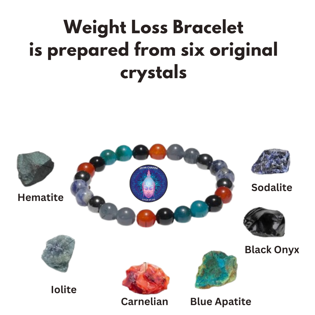 Weight Loss Bracelet for men and women of all ages. We will send one 100% authentic natural crystal hand bracelet Healed, Charged & Energised by your name and Date of birth. Usage of Weight Loss Natural Stone Bracelet - The Crystal Bracelet is ideal for Reducing weight, Unhealthy Cravings, improving Self-Discipline, Strength, Stamina, and healing the beholder from within. Fine Quality weight loss bracelet with Good Quality elastic is a healing crystal bracelet for reduction of weight is made of Black Onyx, Carnelian, Blue Apatite, Hematite, Sodalite, and Lolite. Who can use Crystal Bracelet for Weight Loss - Anyone of any Zodiac sign, Rashi, or Nakshatra can wear a weight loss bracelet for men or a weight loss bracelet for women for their weight loss journey.